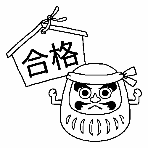 合格祈願 だるま 絵馬 白黒 受験の無料イラスト 冬の季節 行事 学校素材
