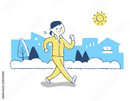 ウォーキング中の若い女性のジャージ姿のフリーイラスト素材